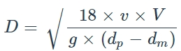 ストークスの法則計算機 - 終端速度、重力による加速度、直径、媒体と粒子の密度、媒体の粘度