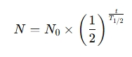 - Uses the exponential decay formula to calculate the remaining quantity (N).