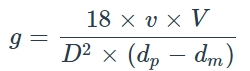 - Valori de intrare : Utilizatorul intră în raza de particule, densitățile particulelor și fluidului, vâscozității fluidelor și accelerației gravitaționale.