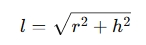 Ak poznáte výšku a polomer, výška sklonu je možné vypočítať pomocou Pythagoreanovej vety: