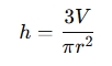 Výška sa dá vypočítať, ak sú známe objem a polomer pomocou vzorca: