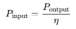 Kalkulačka môže obsahovať aj parametre ako účinnosť (η) pre zariadenia, ako sú motory: