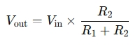 Công thức tính toán giảm điện áp trên điện trở r2 , đó là điện áp đầu ra trong bộ chia.
