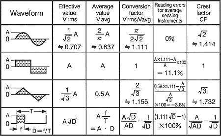 正弦波的转换因子是 1.1,它是通过将有效值除以平均值获得的。如果输入电压或电流的形状不是正弦波,这些仪器就会出错。